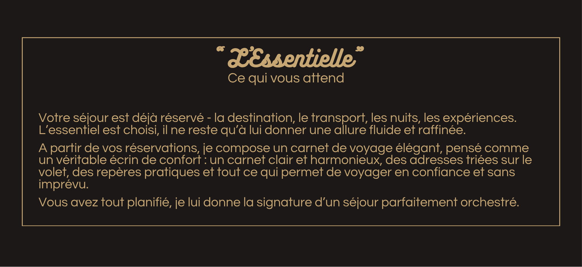 Ce cadeau peut prendre la forme d'un accompagnement complet pour imaginer un séjour sur-mesure ou d'un carnet de voyage pensé comme un écrin pour les personnes qui préférent tout organiser elles-mêmes.